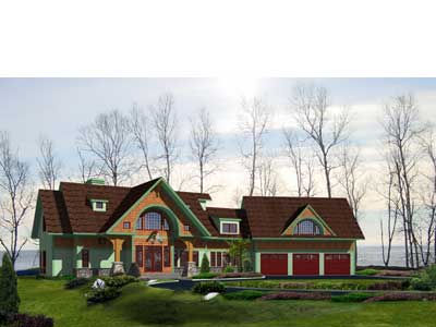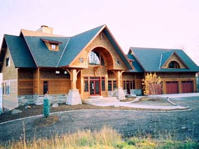 This Country Lake Cottage is hanging on the edge of a 60-foot cliff in Lake County. It features a long, narrow footprint to make it possible for every room in the house to ahave a view of Lake Superior. The 27-foot high fireplace is a 4'x4' modified Rumford fireplace, designed as a see-through. It's visible throughout most of the main and upper levels of the house due to an open floor plan. The rock work is Chilton stone from Wisconsin, and complements the owner's color scheme.